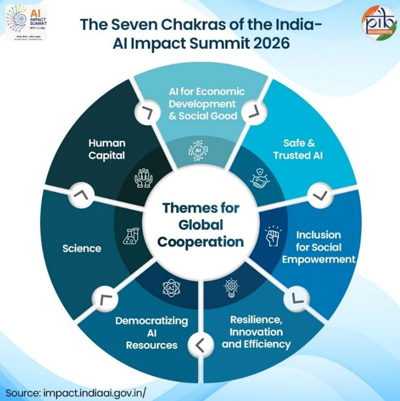 The summit, organized by the Ministry of Electronics and Information Technology (MeitY) under the IndiaAI Mission, is anchored in the "Sarvajana Hitaya, Sarvajana Sukhaya" (Welfare and happiness for all).