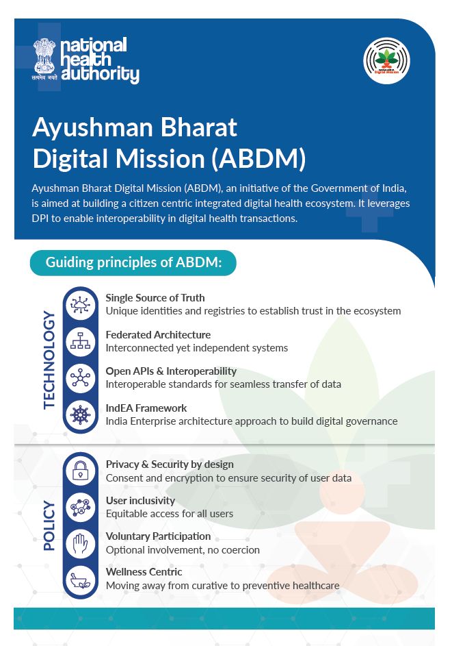 ABDM unifies digital health IDs, linking records to create structured data for AI. It ensures data interoperability and patient privacy via federated learning.
