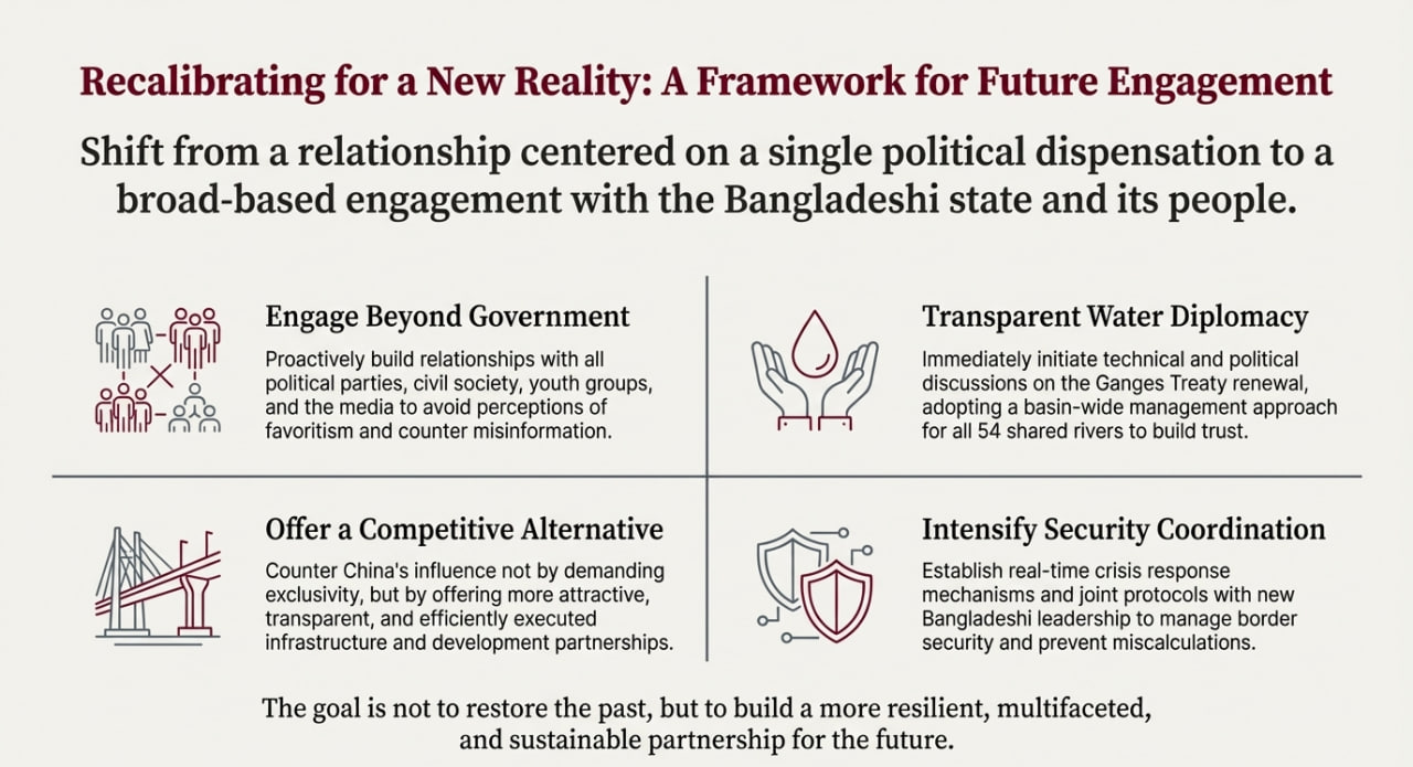 Embrace Bangladesh's Autonomy: India should view Bangladesh's engagement with other powers like China through a pragmatic lens, avoiding a zero-sum game. Compete on the merits of quality, transparency, and shared values.