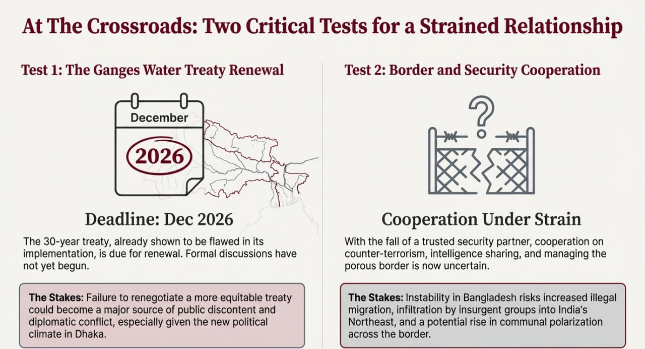 The Teesta River flows from India into Bangladesh, and sharing its water is a critical and sensitive issue. An agreement has been stalled since 2011, mainly due to opposition from the Indian state of West Bengal. The lack of a resolution is a major point of contention in the bilateral relationship.