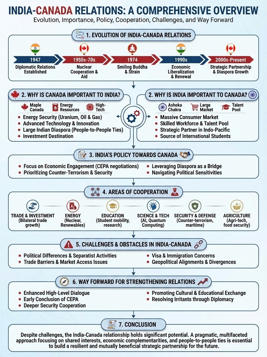 India and Canada are committed to rebuilding their strained relationship into a pragmatic and resilient strategic partnership by focusing on shared economic interests, security cooperation, and strong people-to-people ties.