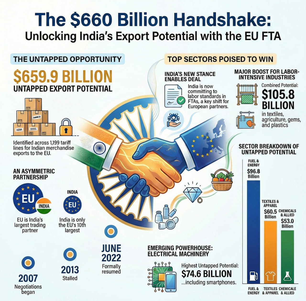 The FTA is more than a trade pact; it is a powerful geopolitical signal, strengthening the India-EU Strategic Partnership, founded on shared values of democracy and a commitment to a rules-based international order.