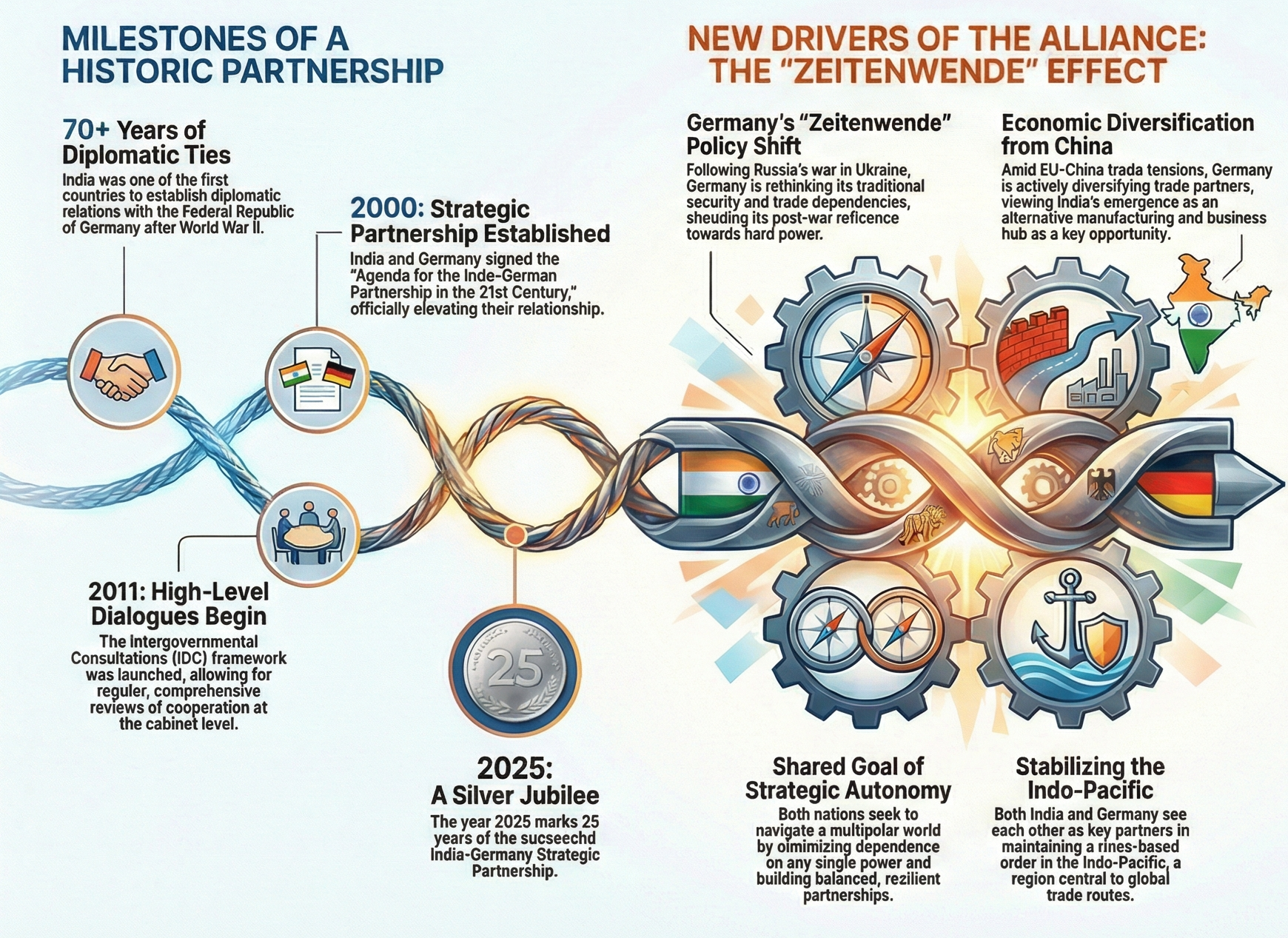 The India-Germany Strategic Partnership is a mature and vital collaboration founded on mutual economic interests, democratic values, and a shared commitment to a stable, rules-based global order.