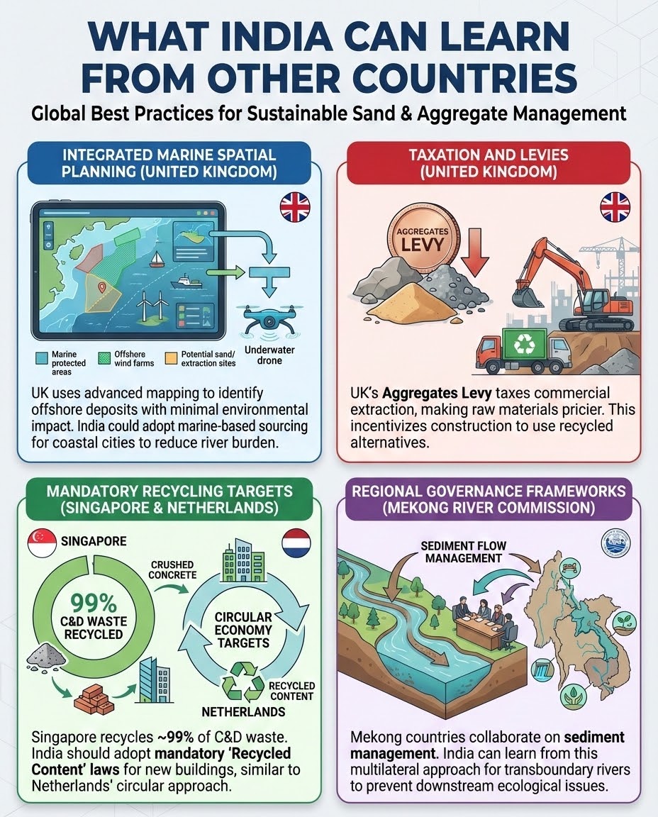 Scaling M-Sand Production: Governments should provide "Industry Status" and financial incentives (like GST concessions) to M-Sand units to make them more competitive than river sand.
