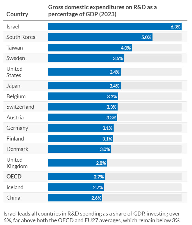 India's Gross Expenditure on R&D (GERD) has stalled at a low 0.64% of GDP for over a decade, significantly trailing major economies like China (2.6%), the US (3.4%), South Korea (5%), and Israel (6.3%).
