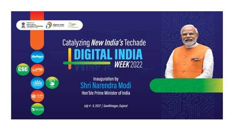 • Prime Minister Narendra Modi inaugurated the Digital India Week 2022 in Gandhinagar with the theme of ‘Catalysing New India’s Techade’.